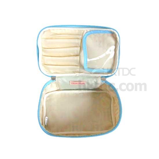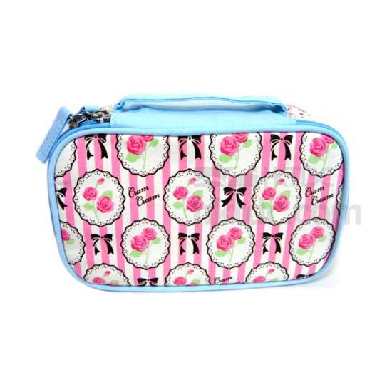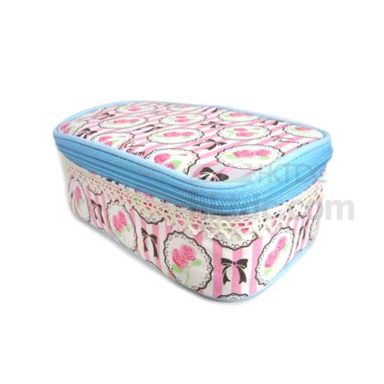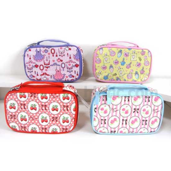 This canvas cosmetic pouch is embellished with colorful prints such as rose, strawberry, perfume and fashion dress. The interior comes with multiple compartments that allow you to put assorted cosmetic items. There are multi-compartments in this cosmetic pouch for the storage of different items.