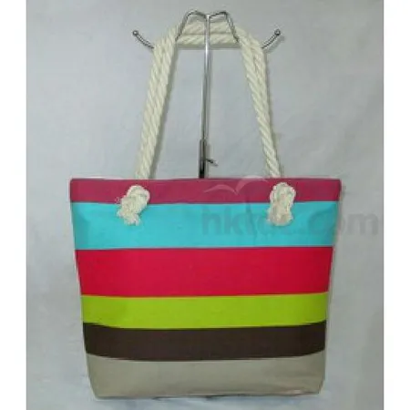 Highlighted here is a versatile striped beach bag in vibrant colors. It comes in a space-efficient tote bag contour, and the printed thick striped pattern adds a splash of colors to your holiday. Made with canvas, this bag is definitely a durable one.