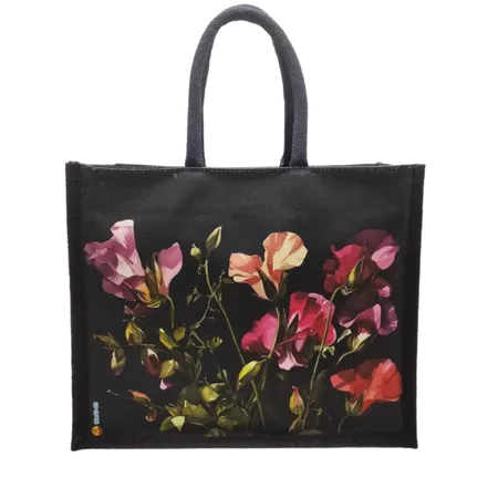Stylish, sturdy, and sustainable — this canvas shopping bag is designed for every day use. Made from high-quality natural canvas, it features a striking black jute gusset that adds contrast, durability, and extra room for your essentials.