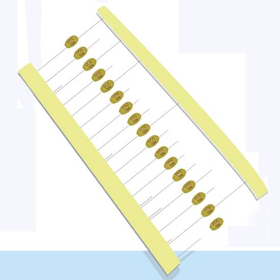 These are Axial-type capacitors with capacitances ranging from 1.5PF to 100,000PF. The rated vaoltages of these capacitors range from 16V to 500V.