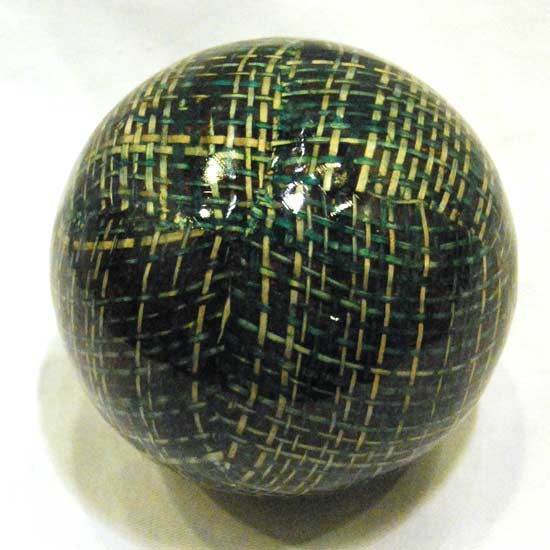 This capiz ball features woven patterns in irregular style. The harmonious colors offer a natural and relaxing touch. The surface is glossed, creating an eye-catching design. This unique ball makes a perfect decoration.