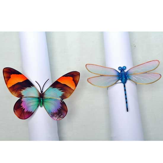 Highlighted is a set of capiz napkin rings with distinguished designs. Featuring a butterfly or a dragonfly design, each napkin ring boasts vivid colors with fine details. This set of napkin rings simply adds a graceful touch to your table.