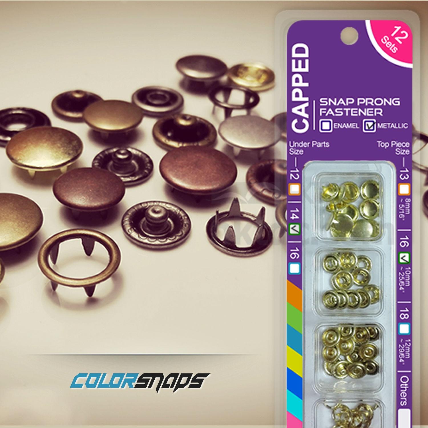 Showcased size 16 and 18 capped snap buttons are one of the common styles within the product lines. The sets are made of fine brass with their surfaces processed by plating and brushed finish. They are suitable for adult clothing and other fabric craft projects.