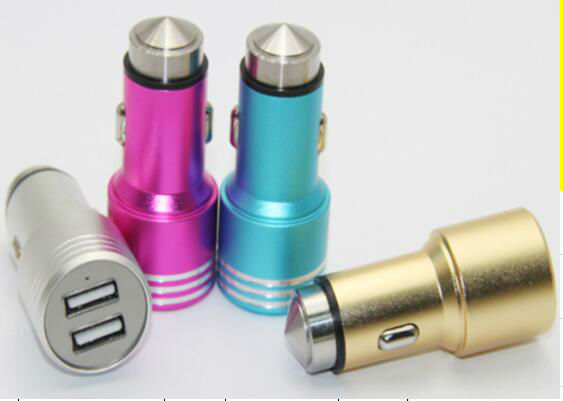 • Dual USB car charger with safe pin hammer