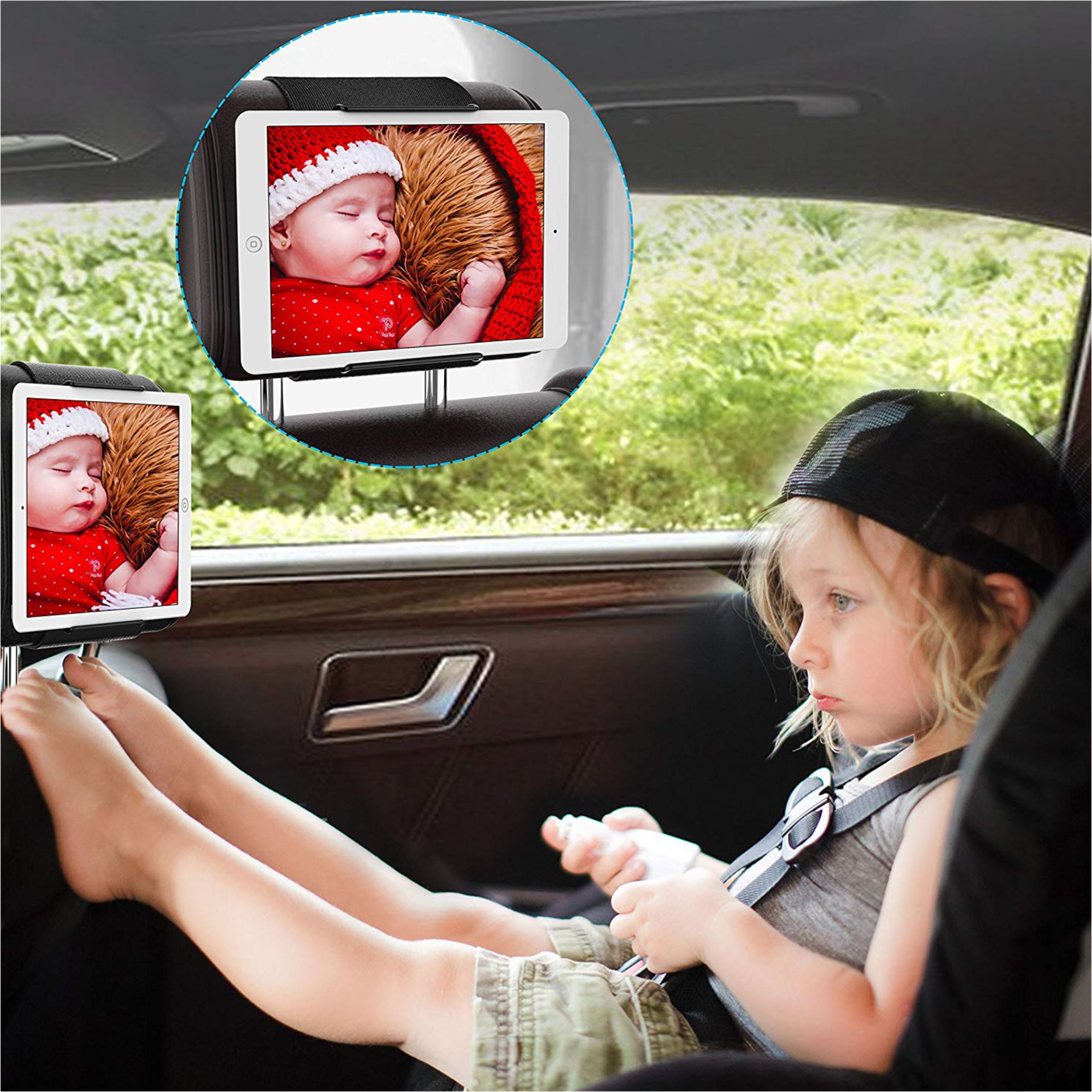 【Easy to Detach & Adjust】This elastic strap is very resilient and can stretch to accommodate normal sized as well as larger vehicle headrests .Tablet can be removed easily and securely form the headrest for maximum in-vehicle convenience. Especially suitable for Children for all ages when having a family Vacation.