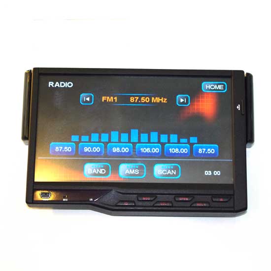 The showcased multi-media player is compatible with DVD, VCD, MP3, MP4, CD and CD-ROM formats. Besides playing music, it supports AM and FM radio broadcasting. The player features a PLL synthesizer tuner.