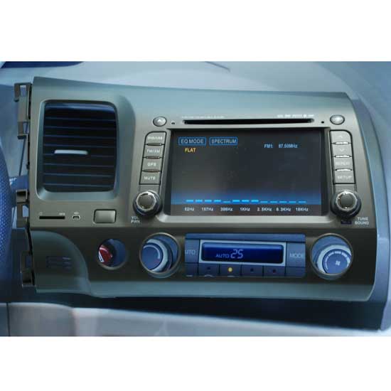This car multimedia system is especially designed and made for Honda Civic cars. The wheel-control and push-button controls are neatly arranged on the sides. This car multimedia system supports digital television, GPS, DVD format and so on.