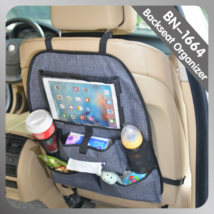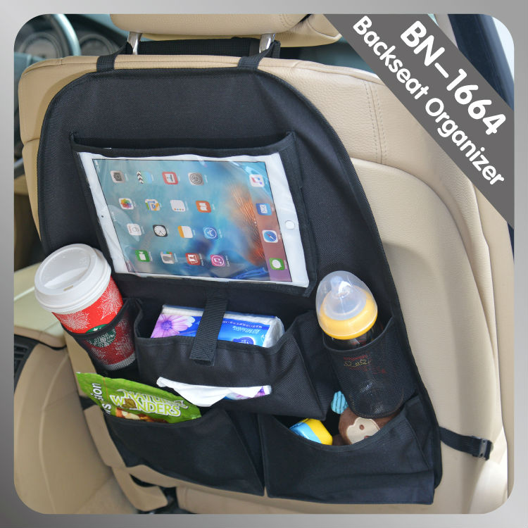 2. Trash bag design to make a place to put rubbish during traveling, and it can put on and off. 3. Adjustable top and bottom ties to keep securely in position.