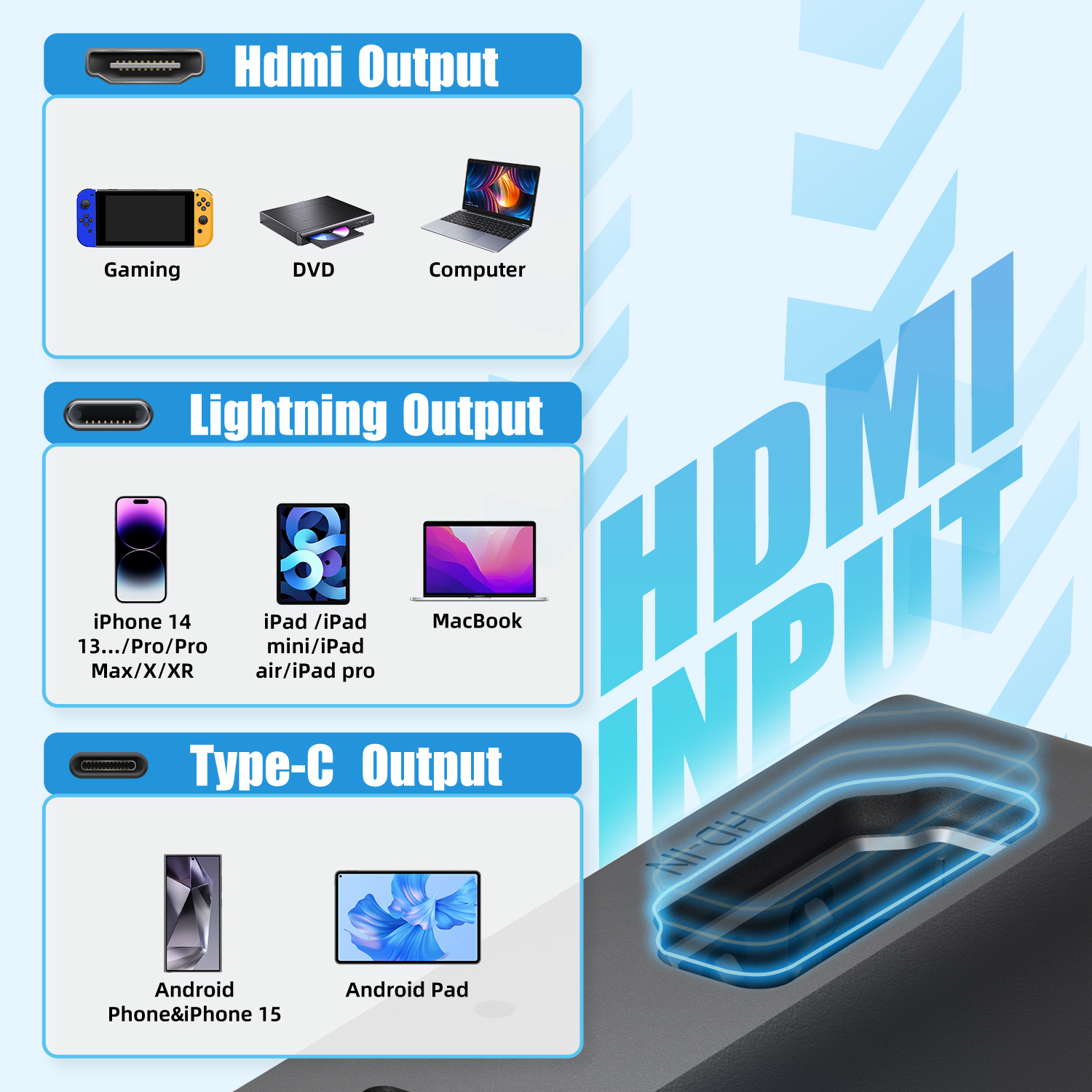 USB Type-C, USB-A,HDMI 1.4,USB Car Charger