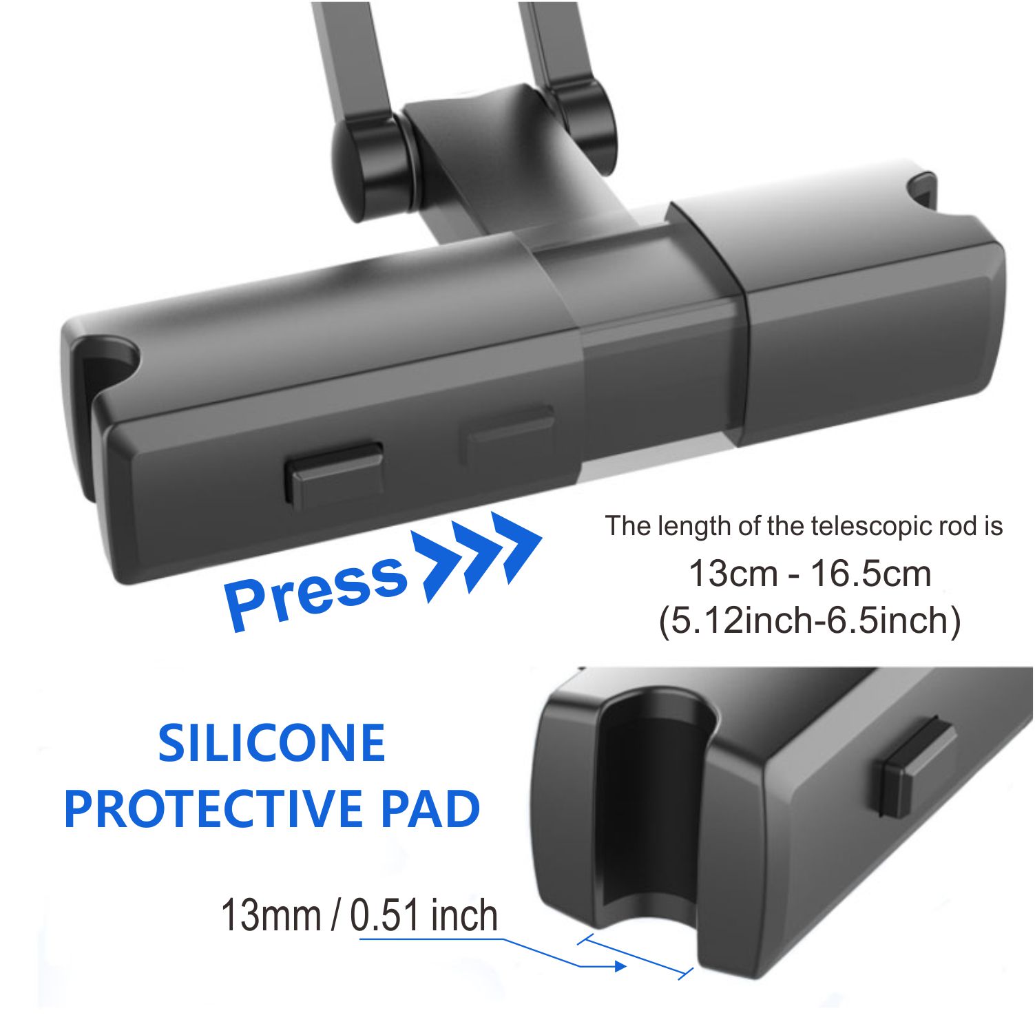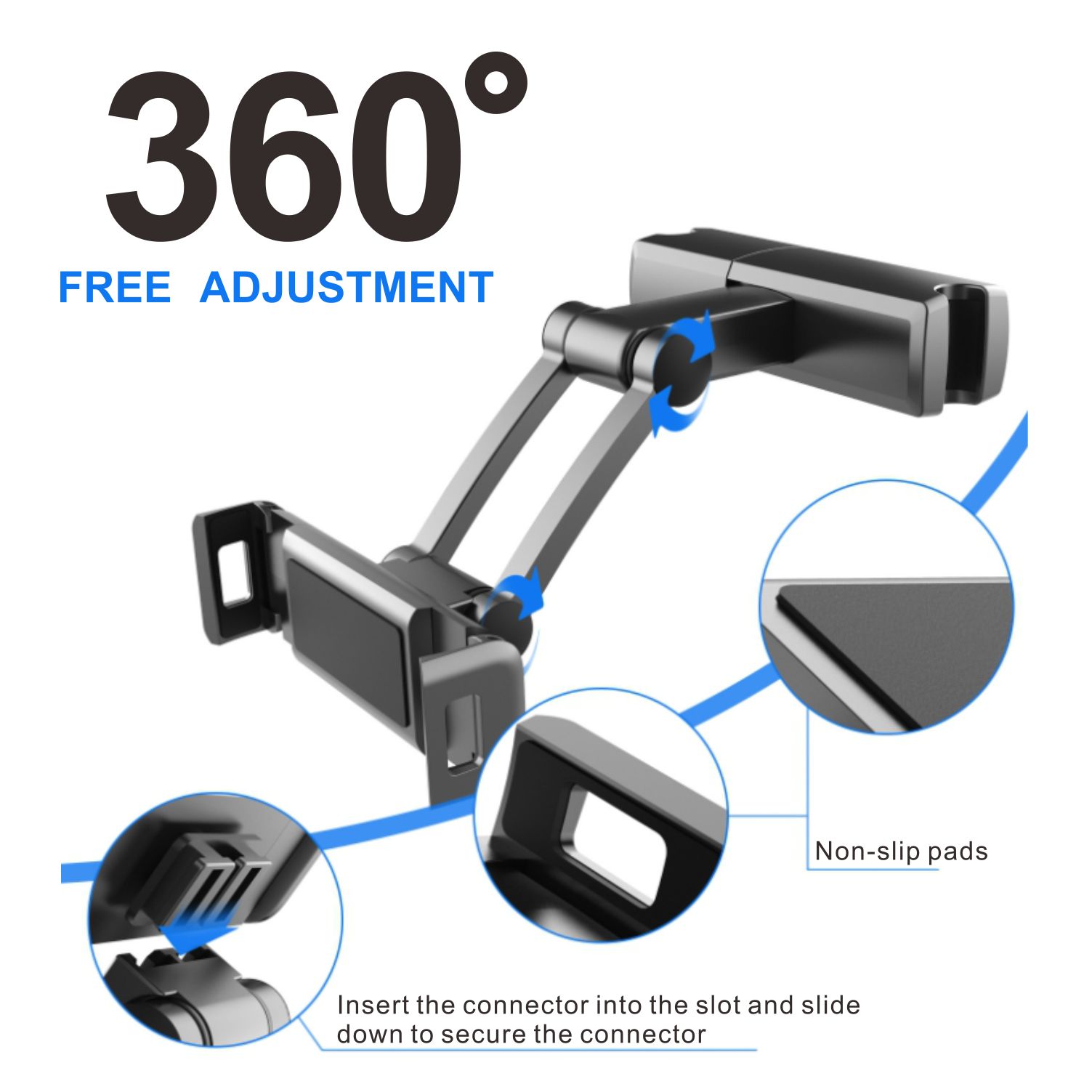 3)Durable ABS clamp and POM headrest base bracket is wearable . Make sure your tablet will be securely fastened to your headrest pole .The back circle helps you easily adjust and tighten. Keep the iPad firmly against the head restraint to keep your beloved hand pad secure from any shaking or vibration. Rubber liners prevent the tablet from scratching and slipping.