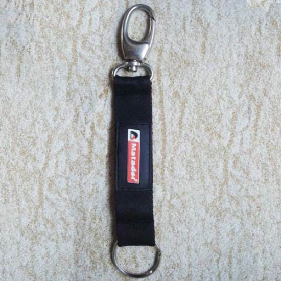 This black short lanyard features a jumbo carabine hook and a metal keyring on two ends of the lanyard. Constructed of durable materials for long-lasting usage, this short lanyard can be used for climbing, cycling or hiking.