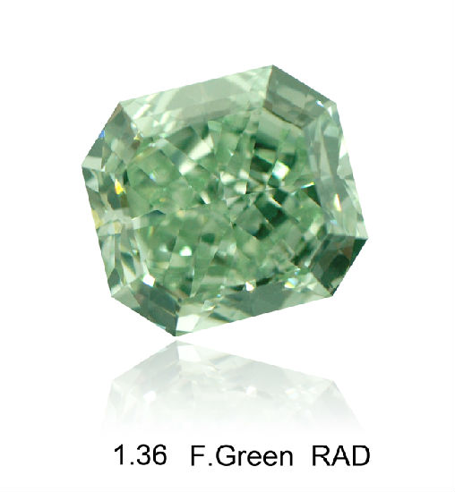 This is a 1.36CT fancy green, cut cornered rectangular mixed cut diamond, VS2. Is very rare.