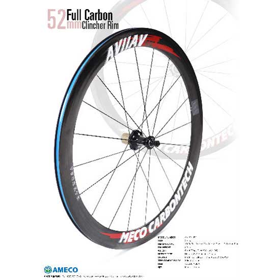 Showcased is a 700c carbon clincher wheelset with 52mm profile. The high profile carbon wheelset is suitable for professional players especially in flat areas. It requires little maintenance and presents good heat-resisting property for enhanced performance.