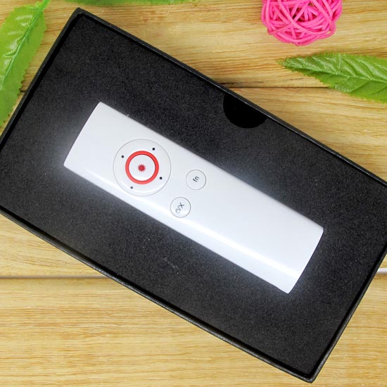 Featured here is a handy presenter pointer with multi-functions. Not only can this presenter allow you to have a better control over your power-point presentation, it features a trans-flash card reader. This presenter comes in a sleek white casing. This laser presenter is an all-in-one controller; it would definitely assist you on having a better and smoother presentation.