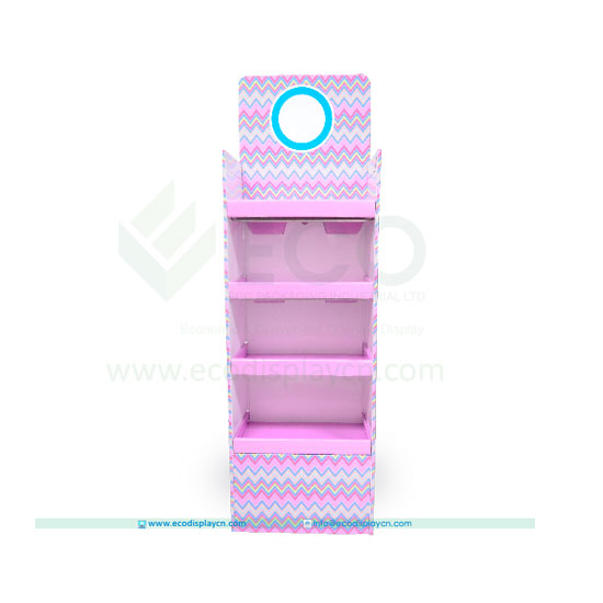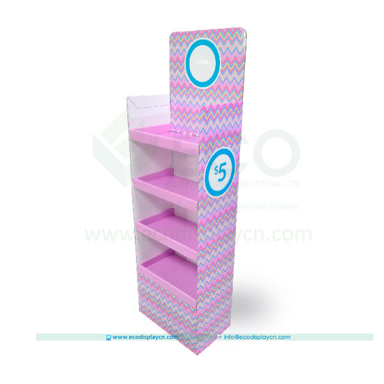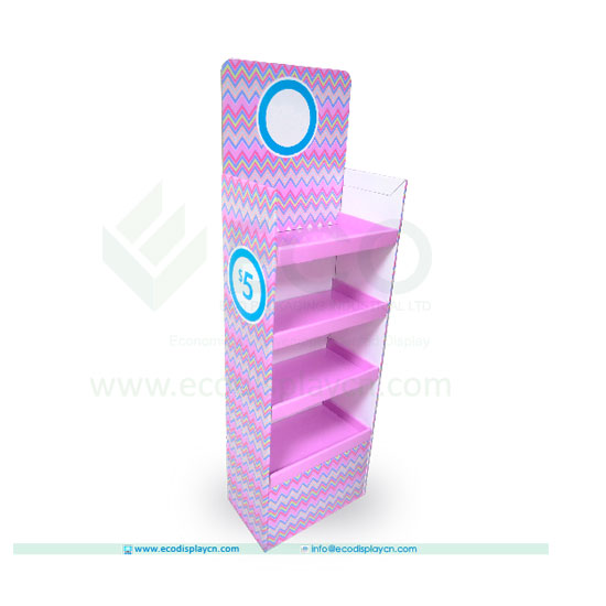 This cardboard display stand comes with a four-layer design. It boasts a robust housing for a long service life. This cardboard display stand is designed with colorful prints for an eye-catching look.