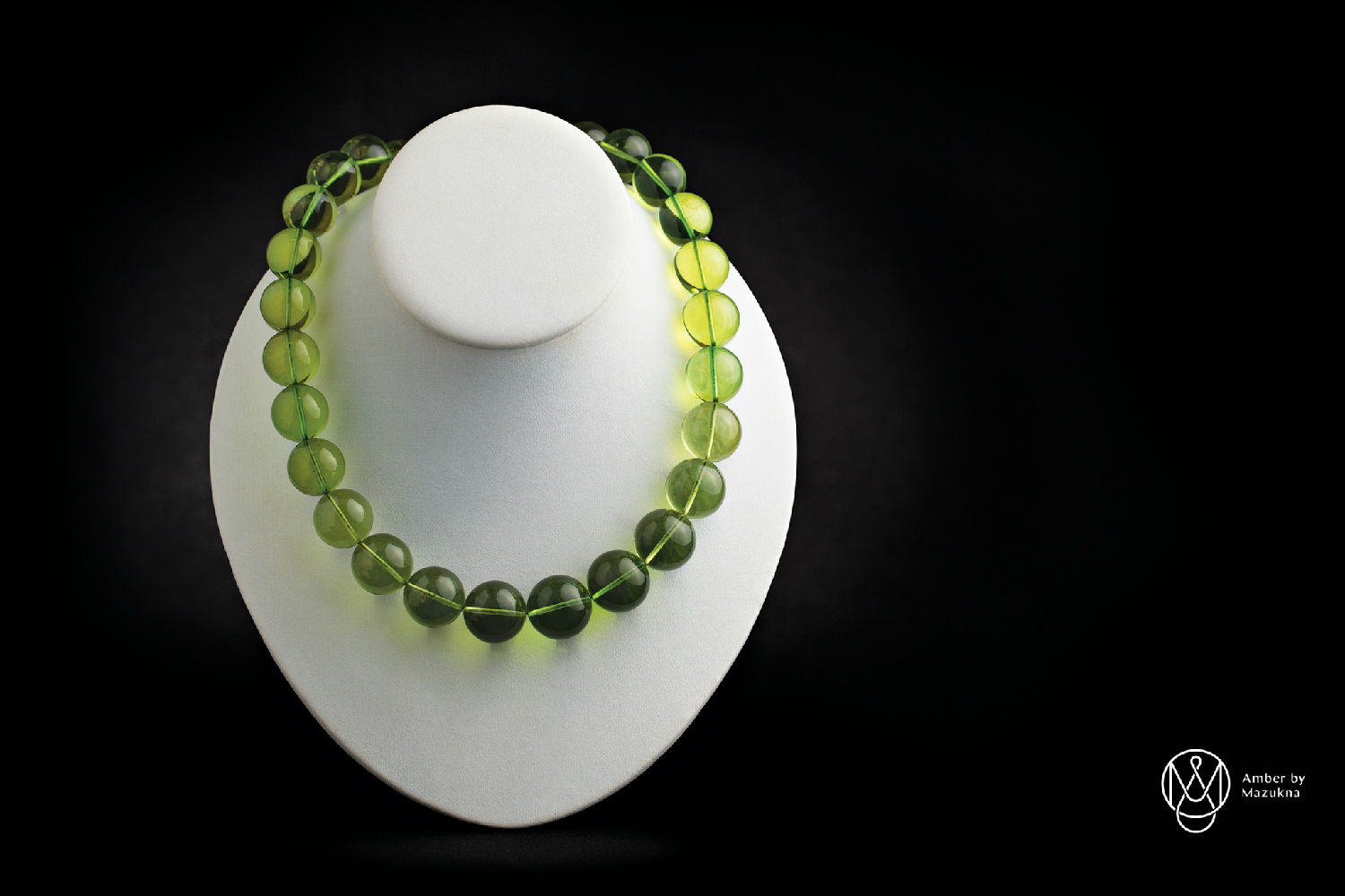 • Caribbean amber necklace made of 14mm ball beads, plastic screw clasp.