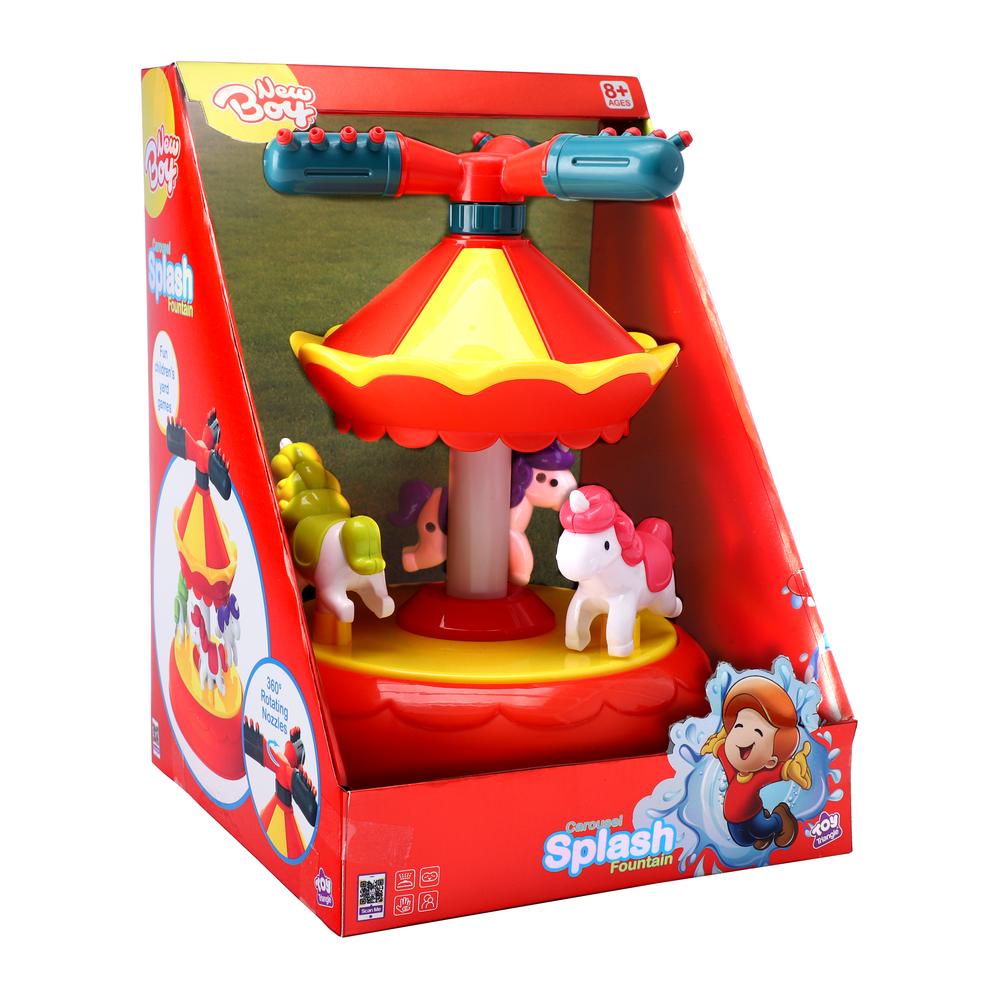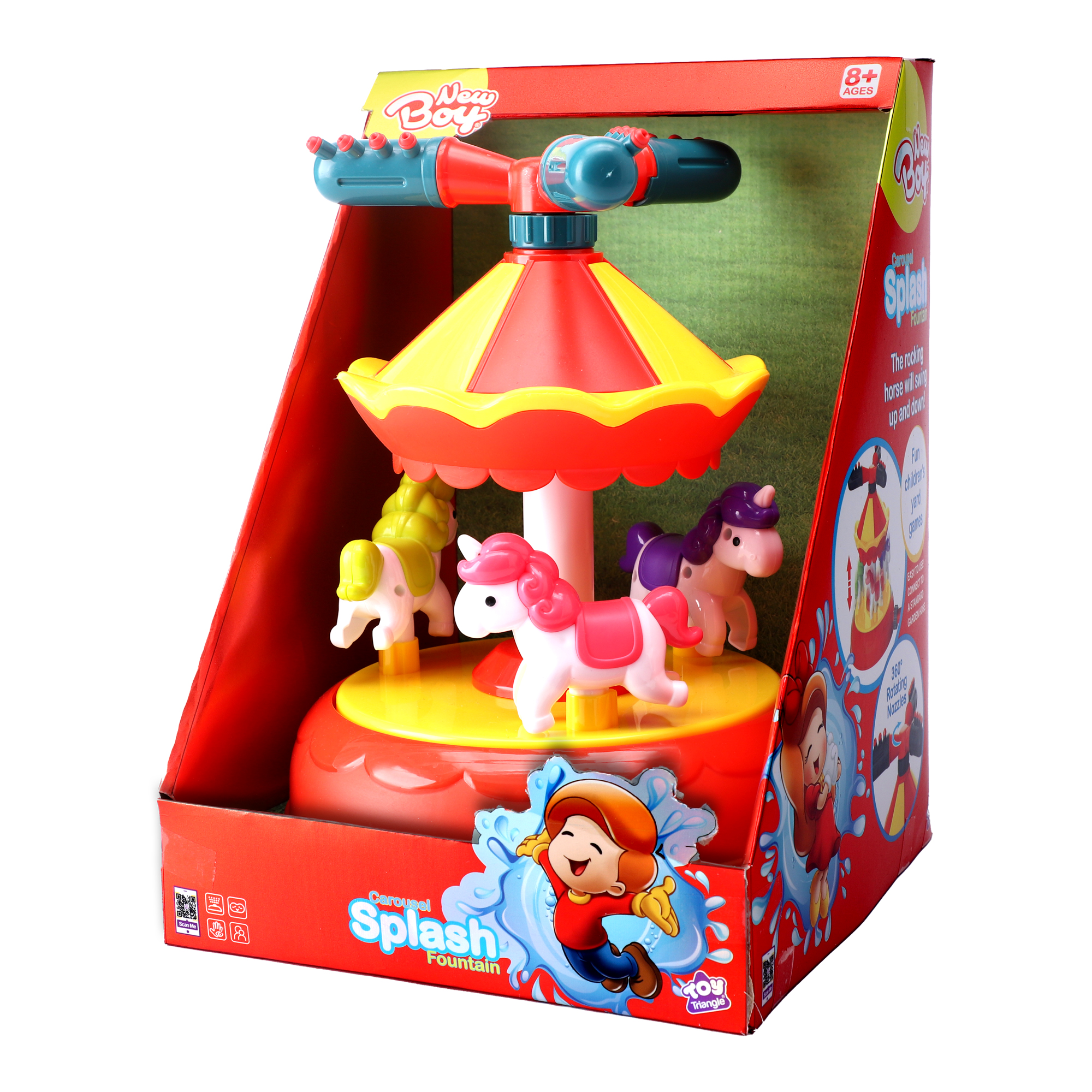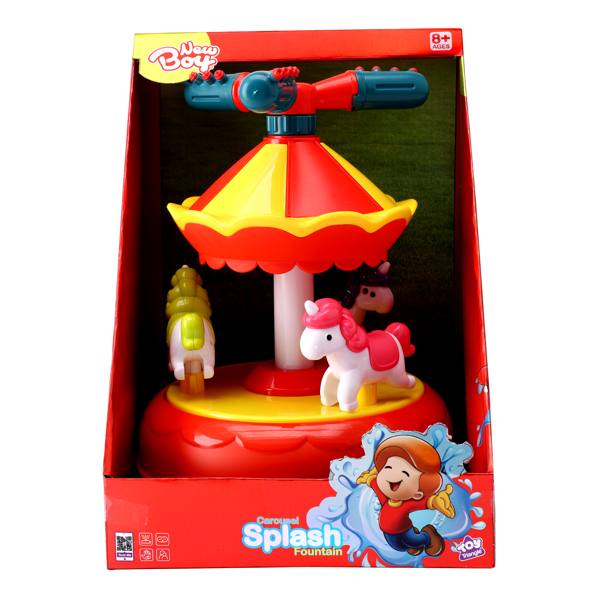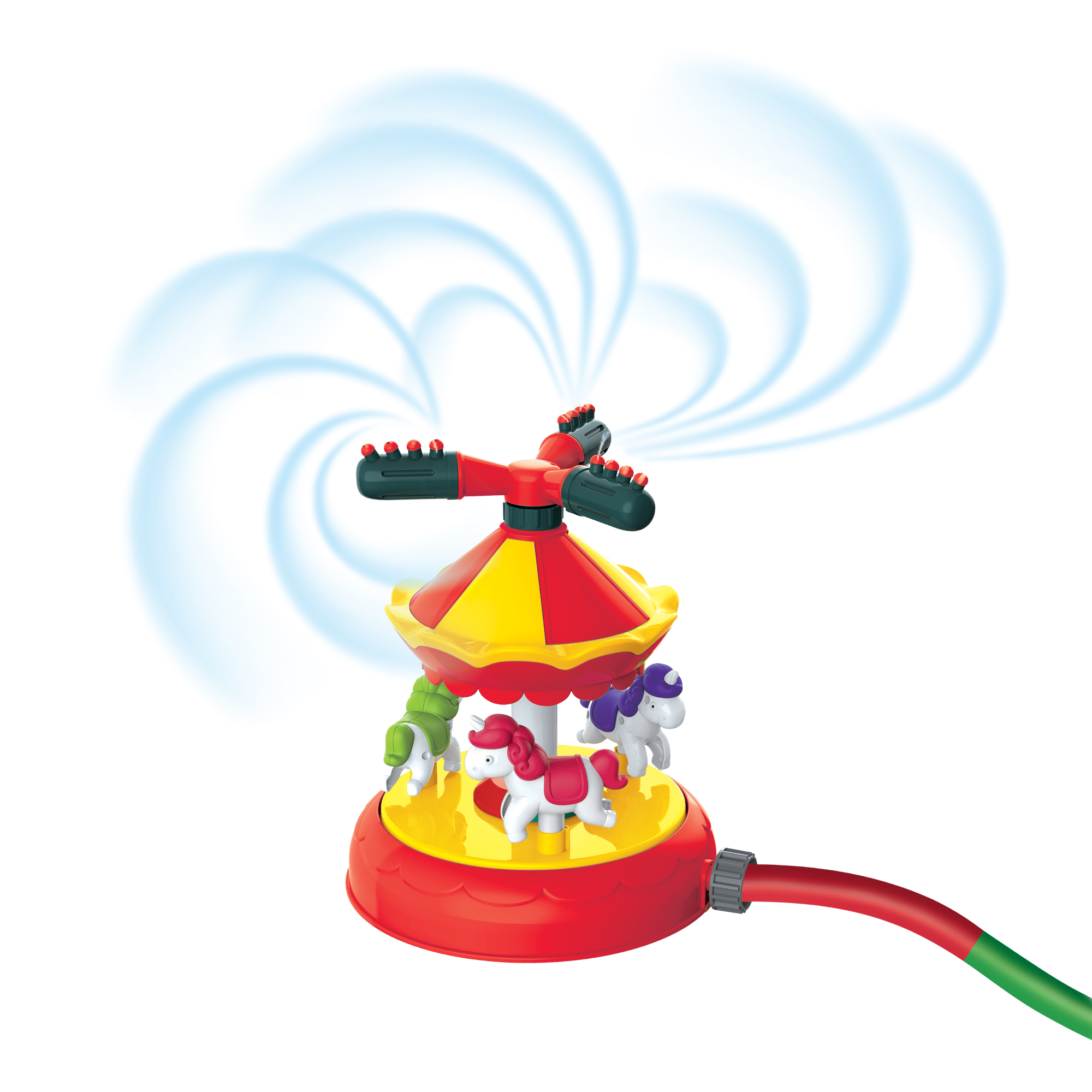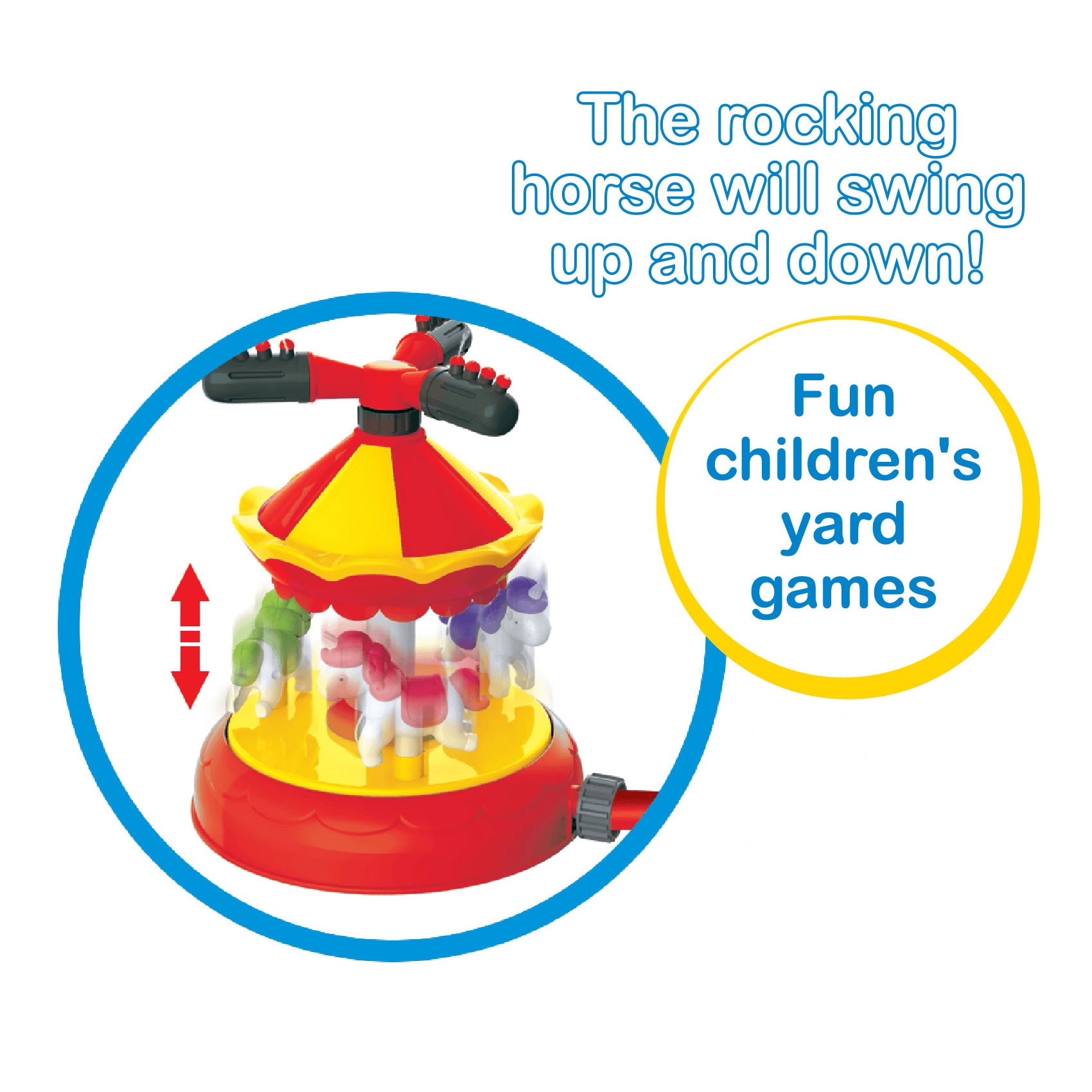 Introducing the Carousel Splash - Fountain, the ultimate backyard fun for kids! This exciting water play toy is easy to use - simply connect it to a standard garden hose (hose not included) and watch as the rocking horse swings up and down while the 360° rotating nozzles spray water in every direction.