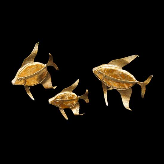 These vivid fish decorations will add interest to any interior living space. The fish decorations are crafted of wrought iron and accented with gemstones. The sturdy fish decorations can maintain their style and beauty for years.