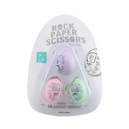This set of three keychains comes in egg shape and offer a fun and unique way to play rock paper scissors. It is attached to a round split ring with chain on top and can be attached to zipper, keys and more. The keychain set is fun to play with and is an excellent gift choice for kids.