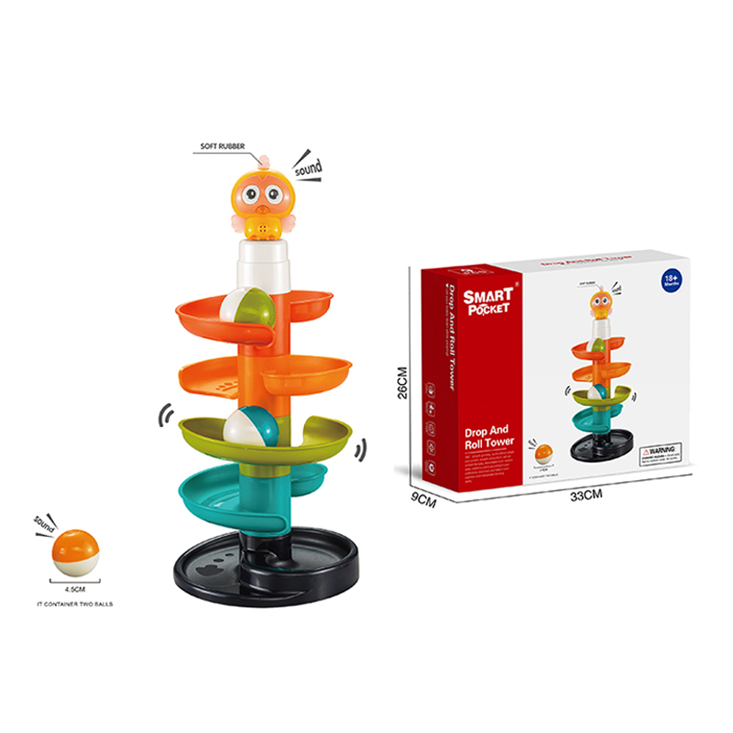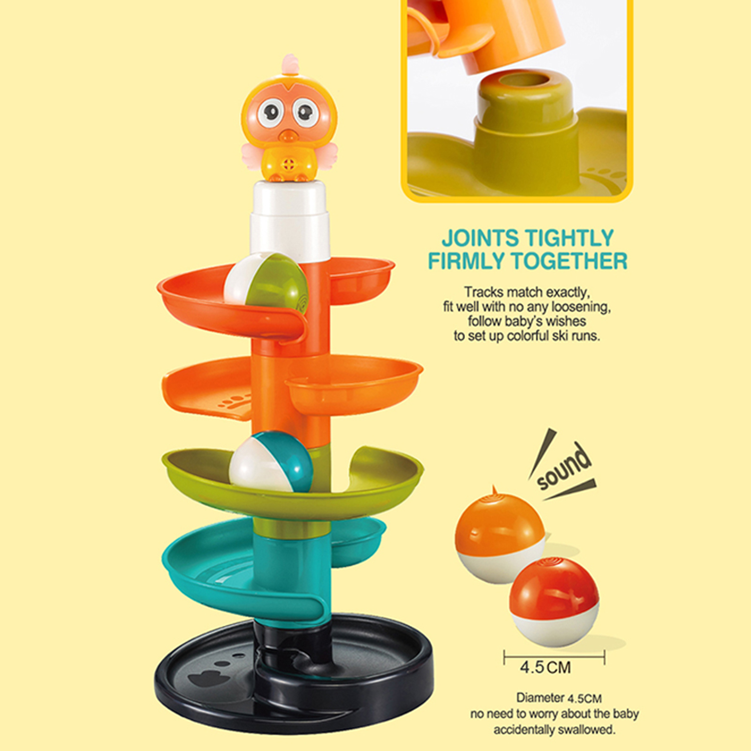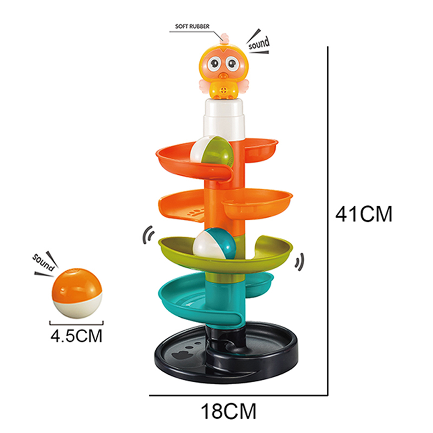 【Feature】: Each ball contained beads, the balls making crisp rattling sounds when they wind and roll down the tower ramps.