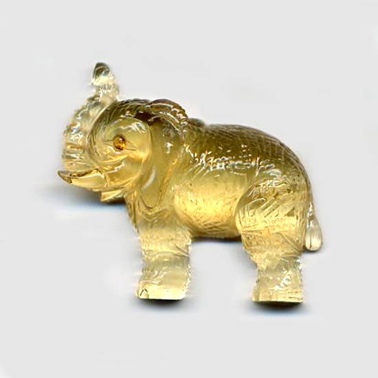This is a piece of carved coloured gemstone featuring an elephant. The carving delicately reveals the skin texture of the elephant, adding its exquisite and refined feature. It is also embellished with a glittering eye as the catching point of the whole piece.