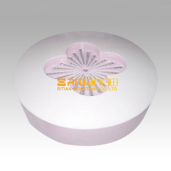 This is a carving lamp featuring a round shape in light pink. It is meticulously designed with a flower pattern in the center, showcasing a touch of elegance. Add a sweet sense to your home décor with this refined lamp.