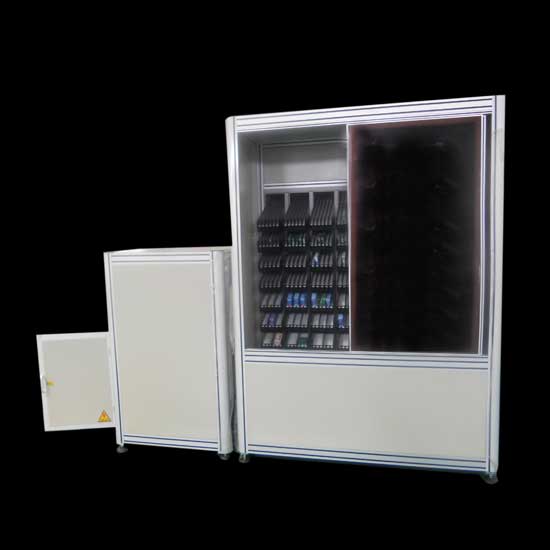 The cased intelligent storage system features independently self-developed software. Each functional block implements independent modularization combination. This piece is also equipped with a low noise conveyor system.