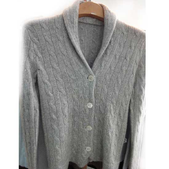 This ladies' cashmere cardigan features a small shawl collar with a modest button-up front. Beautiful knit patterns lend this cardigan extra elegance. Designed with a versatile light gray color, this cardigan is suitable for all seasons.