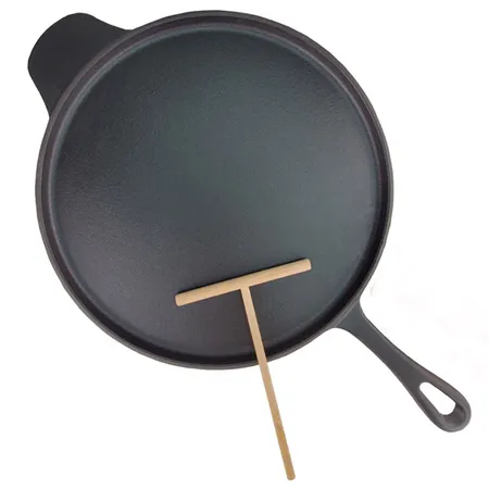 Cast Iron Crepe Pan with wood spreader, 30cm diameter