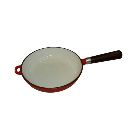 This frying pan is made of quality cast-iron for a long service life. This well-engineered frying pan delivers high performance. This high-quality frying pan is finished with a wooden handle for a comfortable grip.