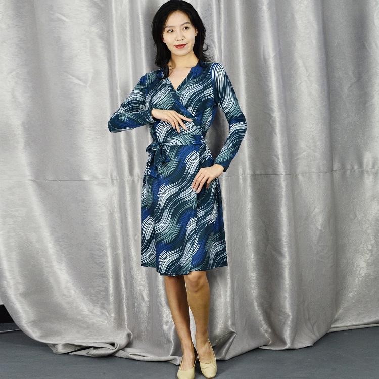 Casual Digital Printed Long Sleeve Maxi Women Dress