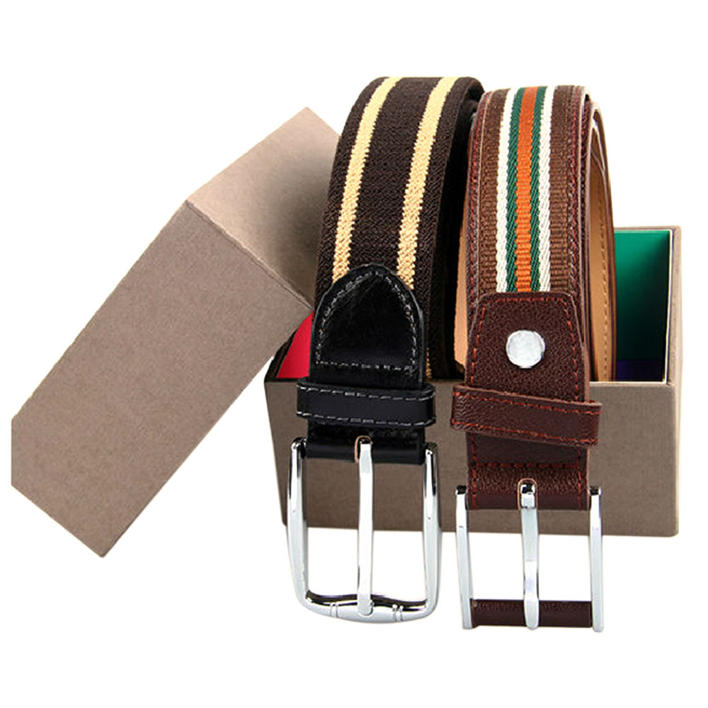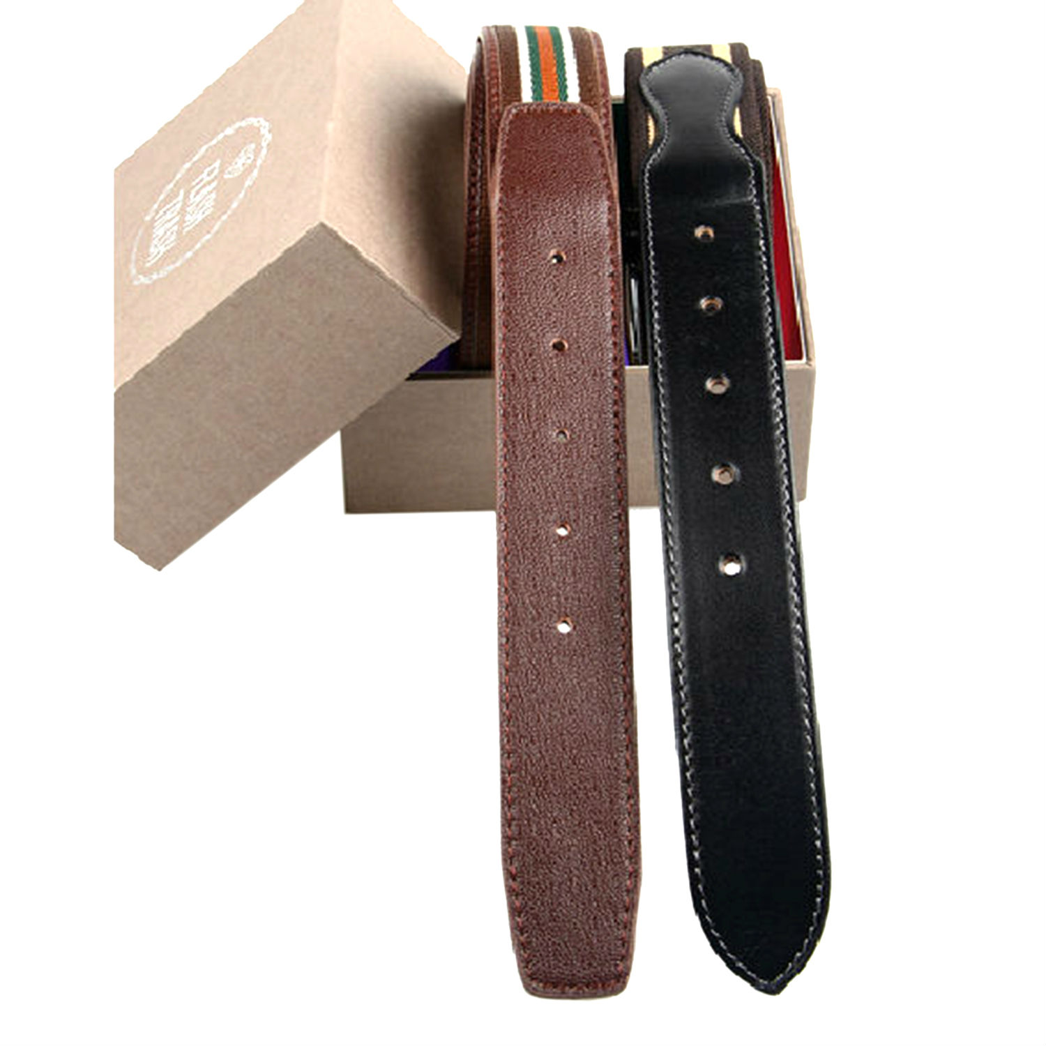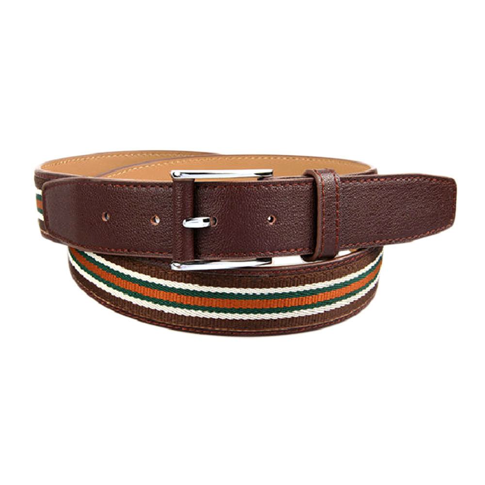- 3.3 cm Width Leather Belt with Nylon Mixed Material.