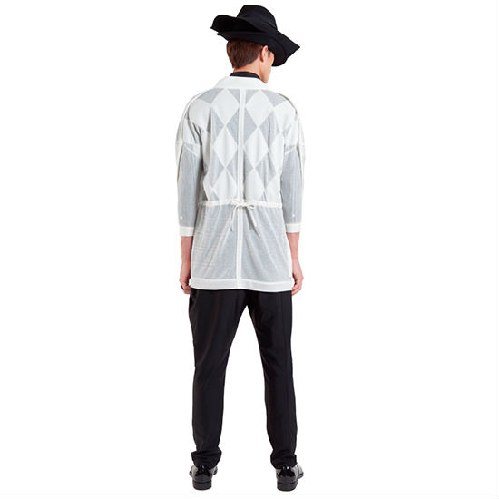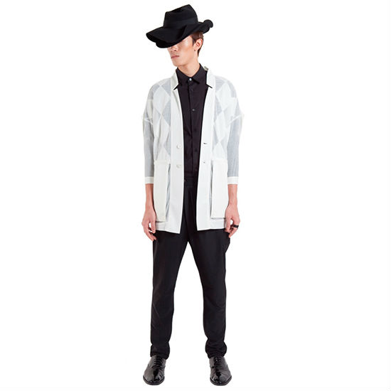 Add a distinctive touch of style to your look with this fabulous jacket. Simplistic yet beautiful, the crisp white sleeve jacket offers a delicate rhombus pattern with see-through effects. Team this stylish piece with dark-colored shirts and trousers for a casual, swanky look.