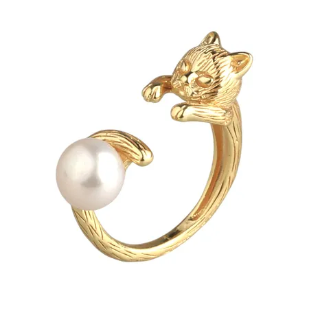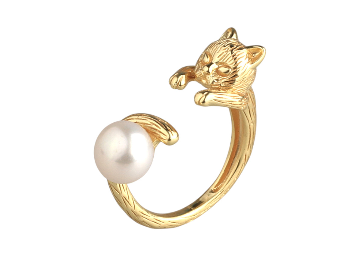 STERLING SILVER RING WITH 7.5-8MM BUTTON FRESHWATER PEARL, YELLOW GOLD PLATED