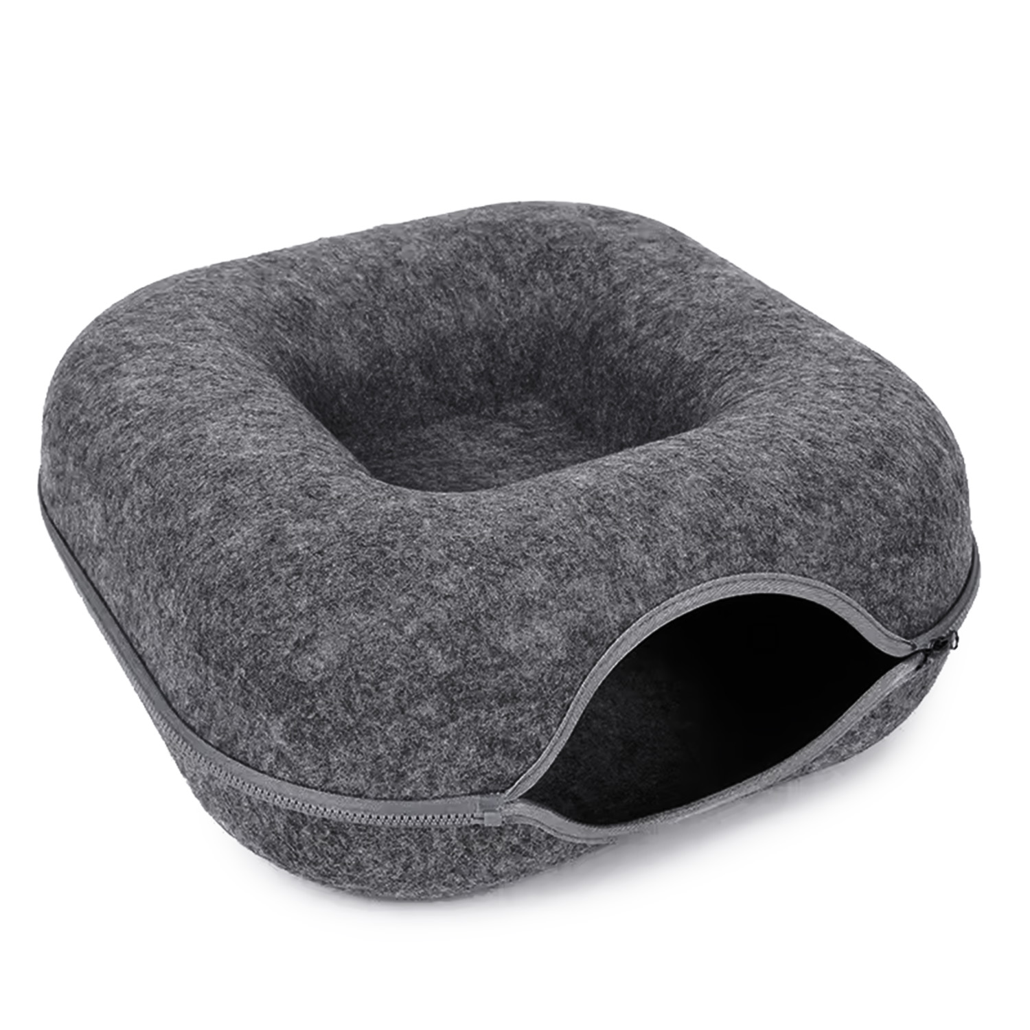 - Available in dark grey, light grey, and pink, the cat cave is stylish and can be incorporated into any of your home décor styles.