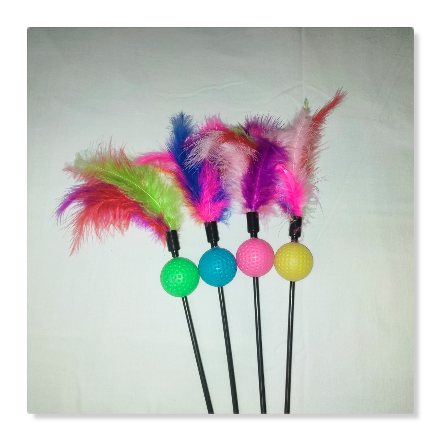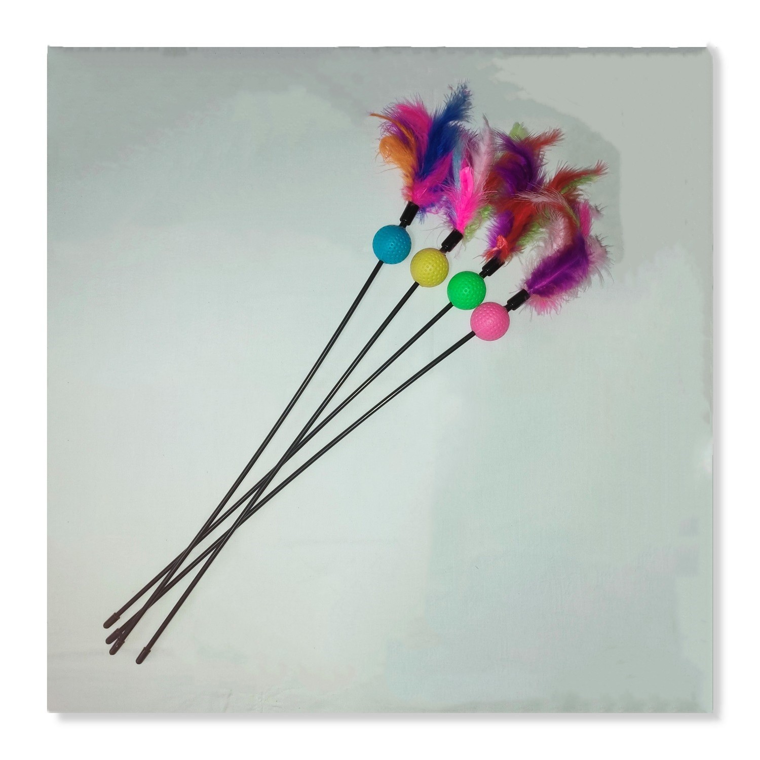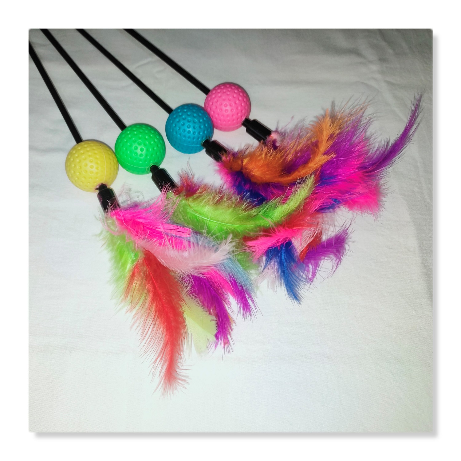 Cat Kitten Teaser Feather Ball Playing Rod Wand Stick Funny Interactive Toy