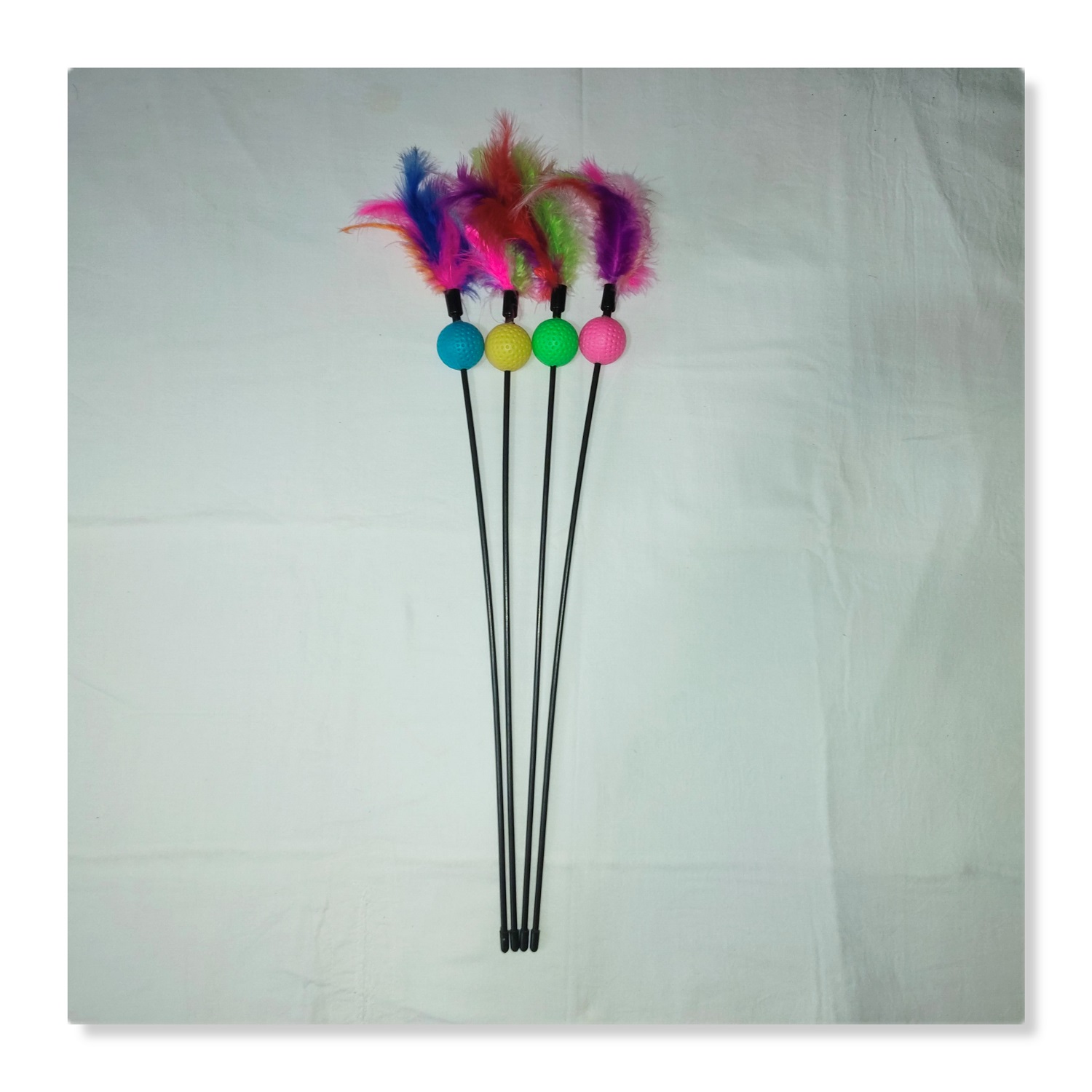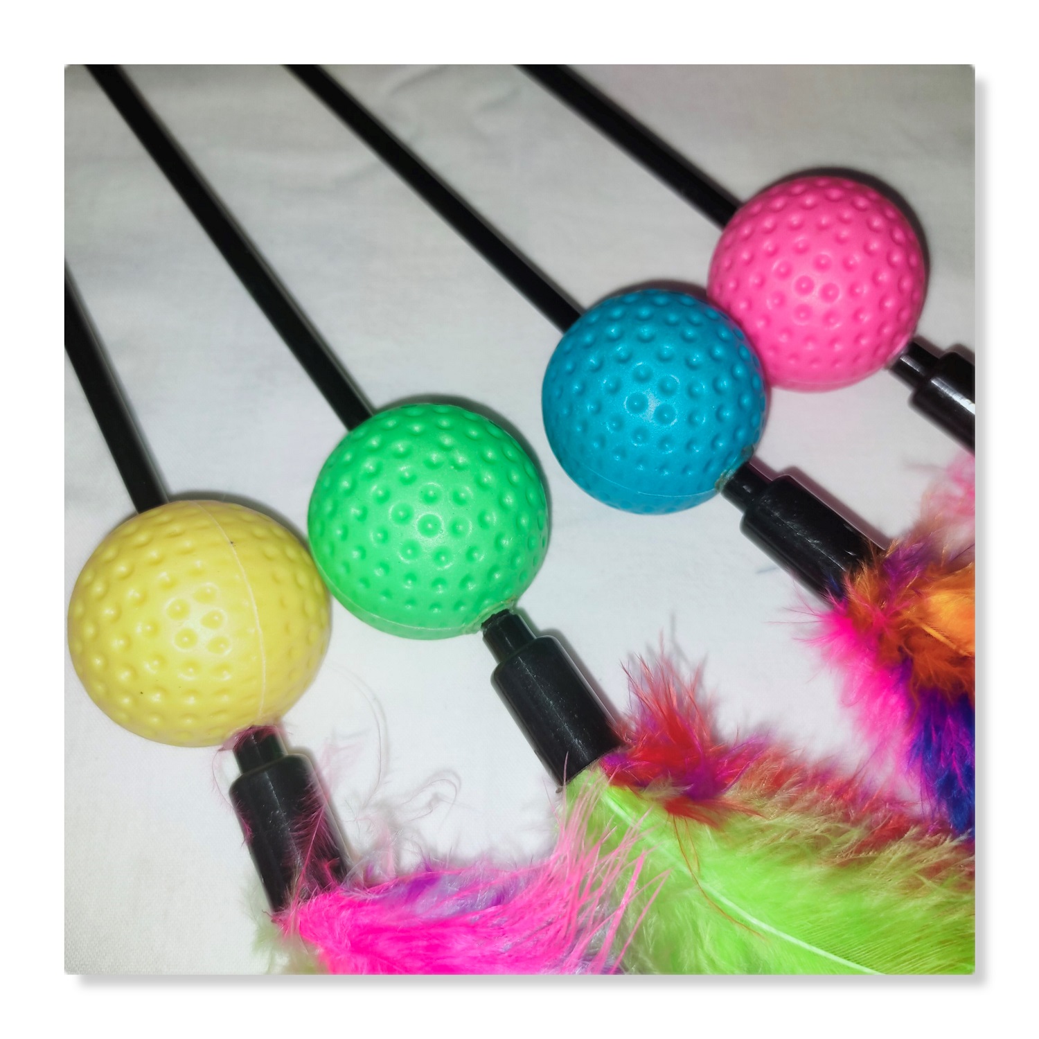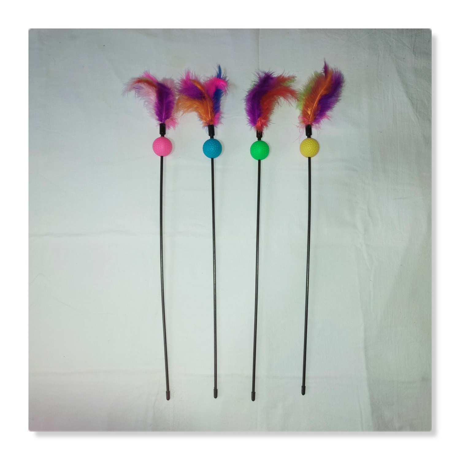 Cat Kitten Teaser Feather Ball Playing Rod Wand Stick Funny Interactive Toy