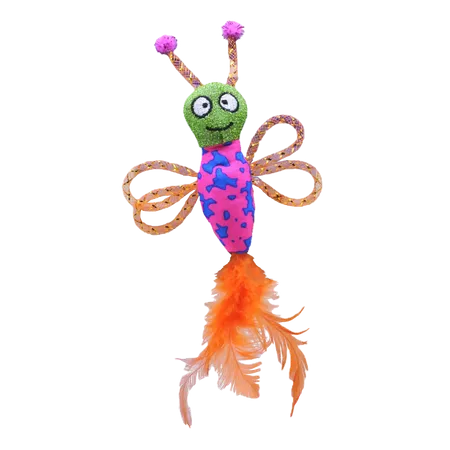 Let your cat chase, pounce, and play with the Flutter Bug Quartet! These vibrant insect-inspired toys feature glittery heads, looped ribbon wings, and fluttery feather tails—designed to mimic the movement and texture of real prey while adding a splash of fantasy to your cat’s playtime.
