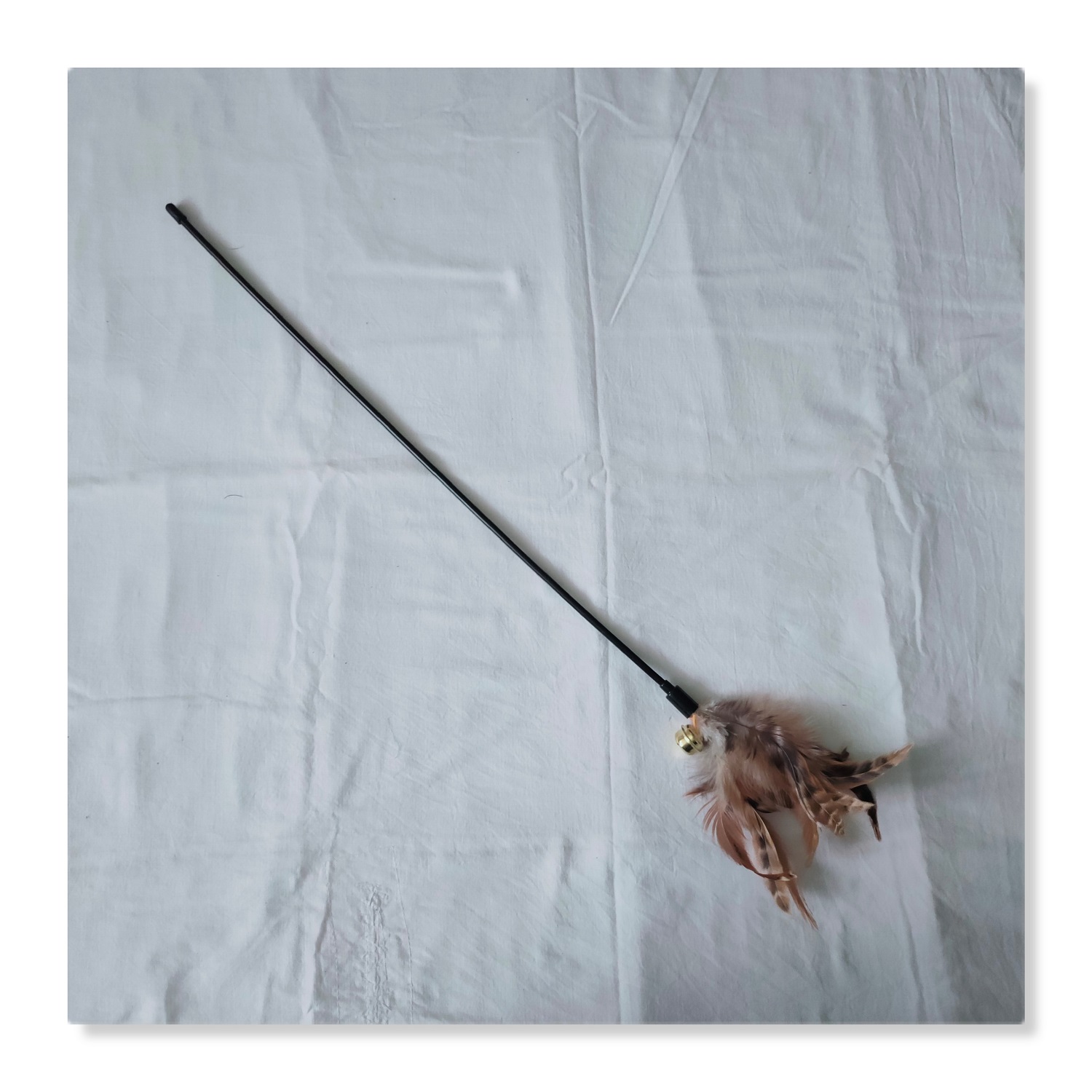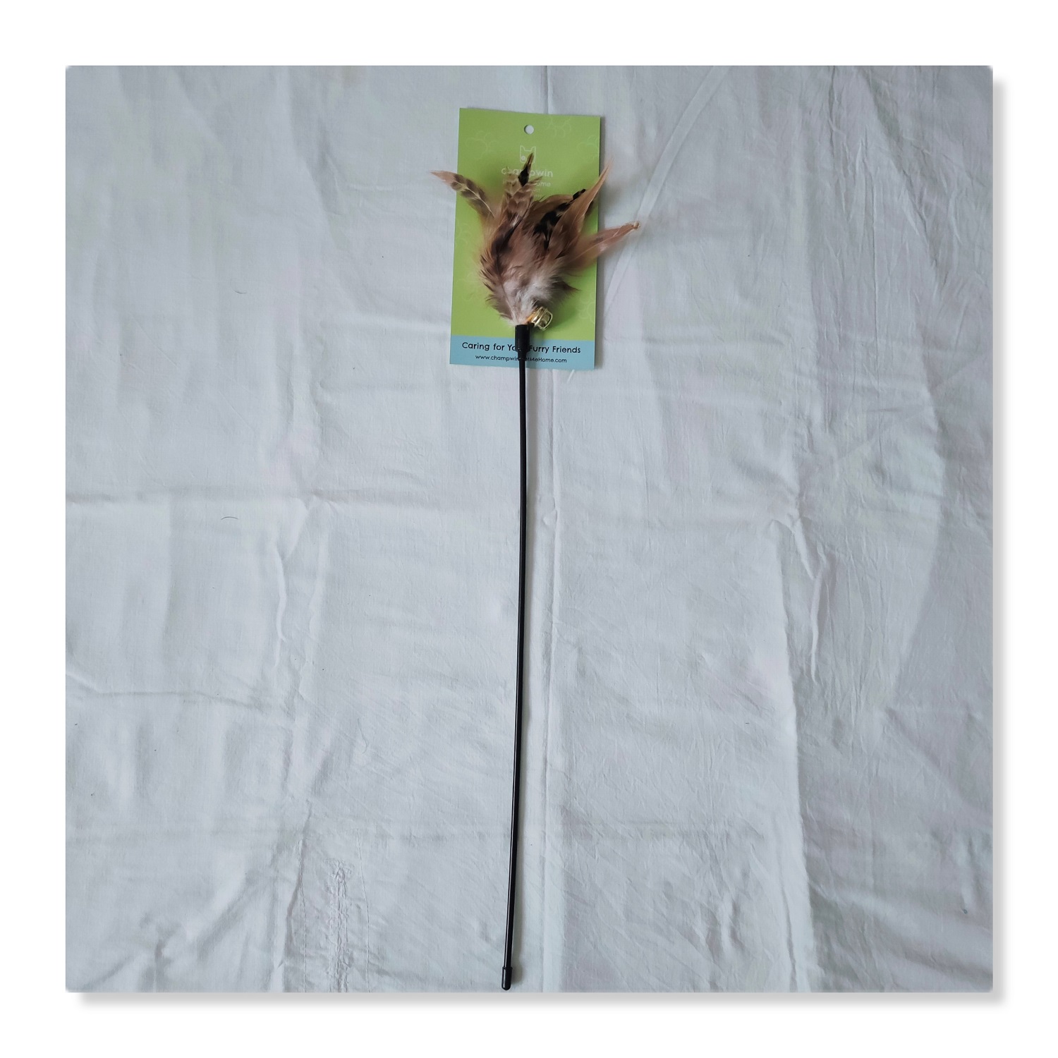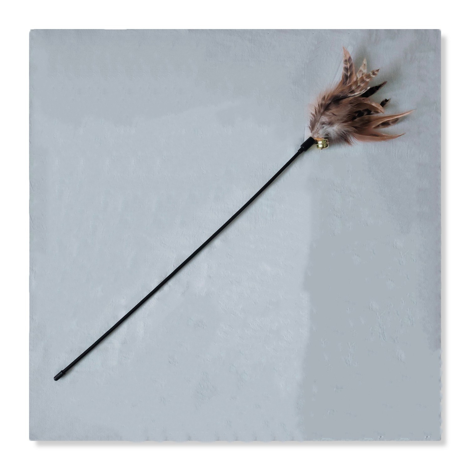 Our cat teaser wand with a handle, easy to grip and hold while you play
