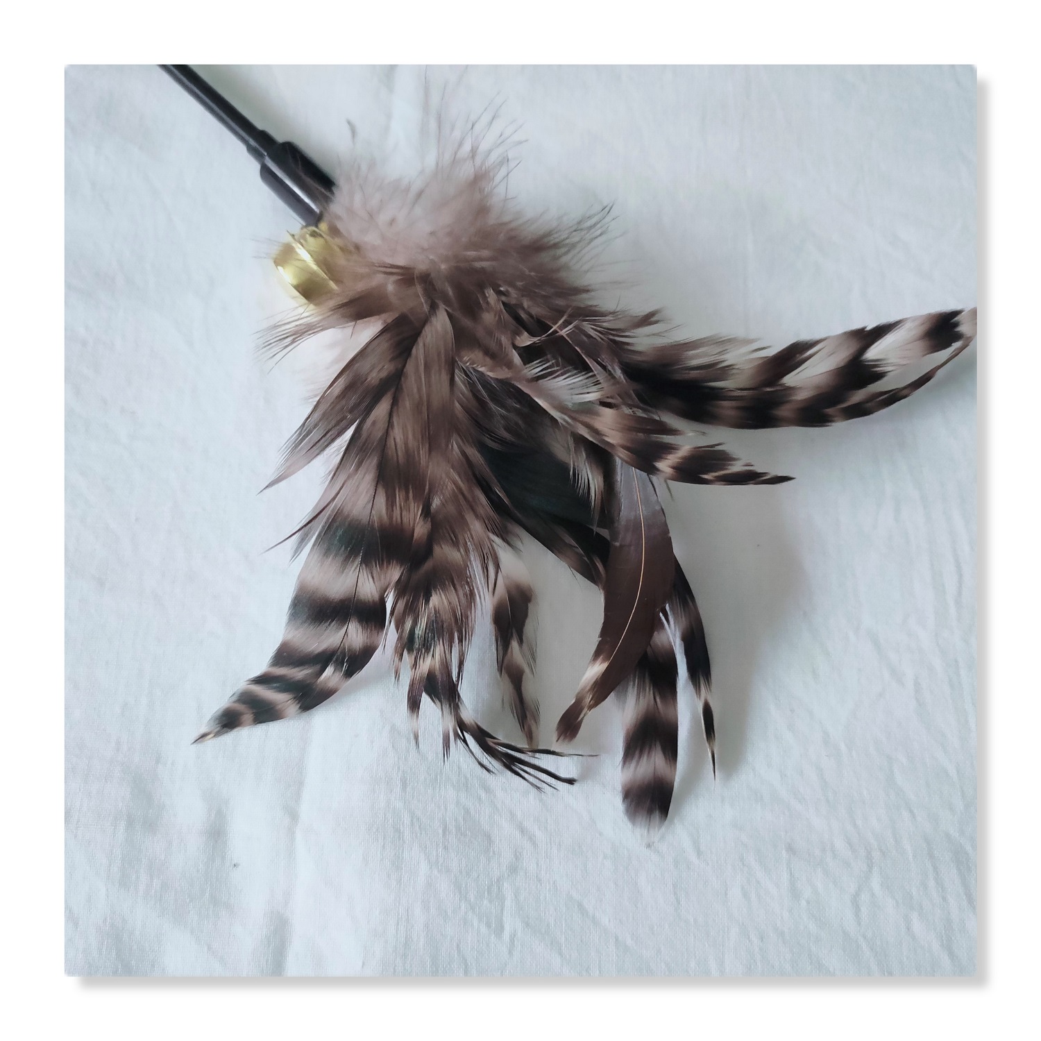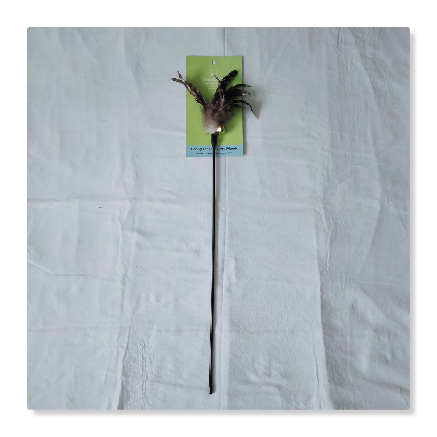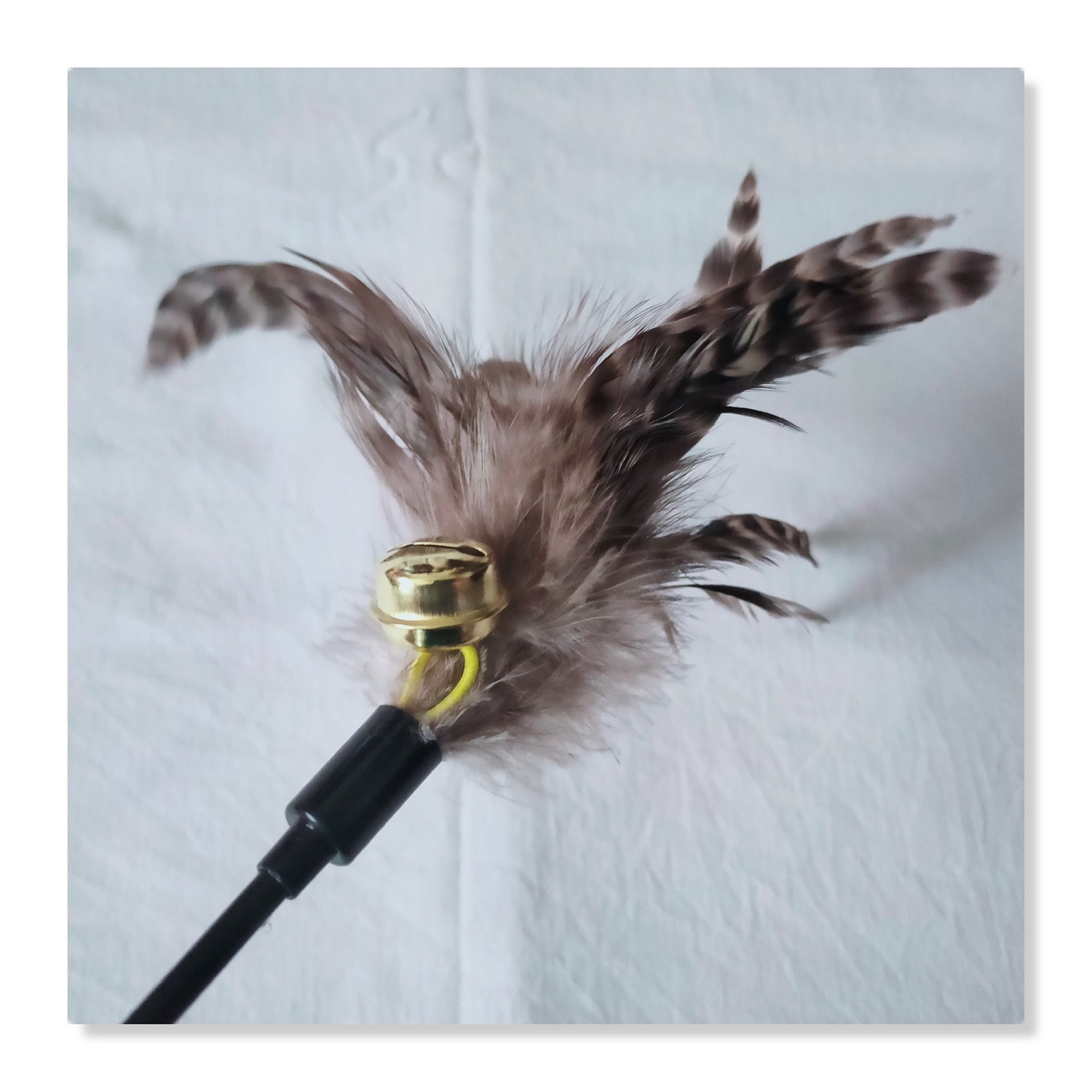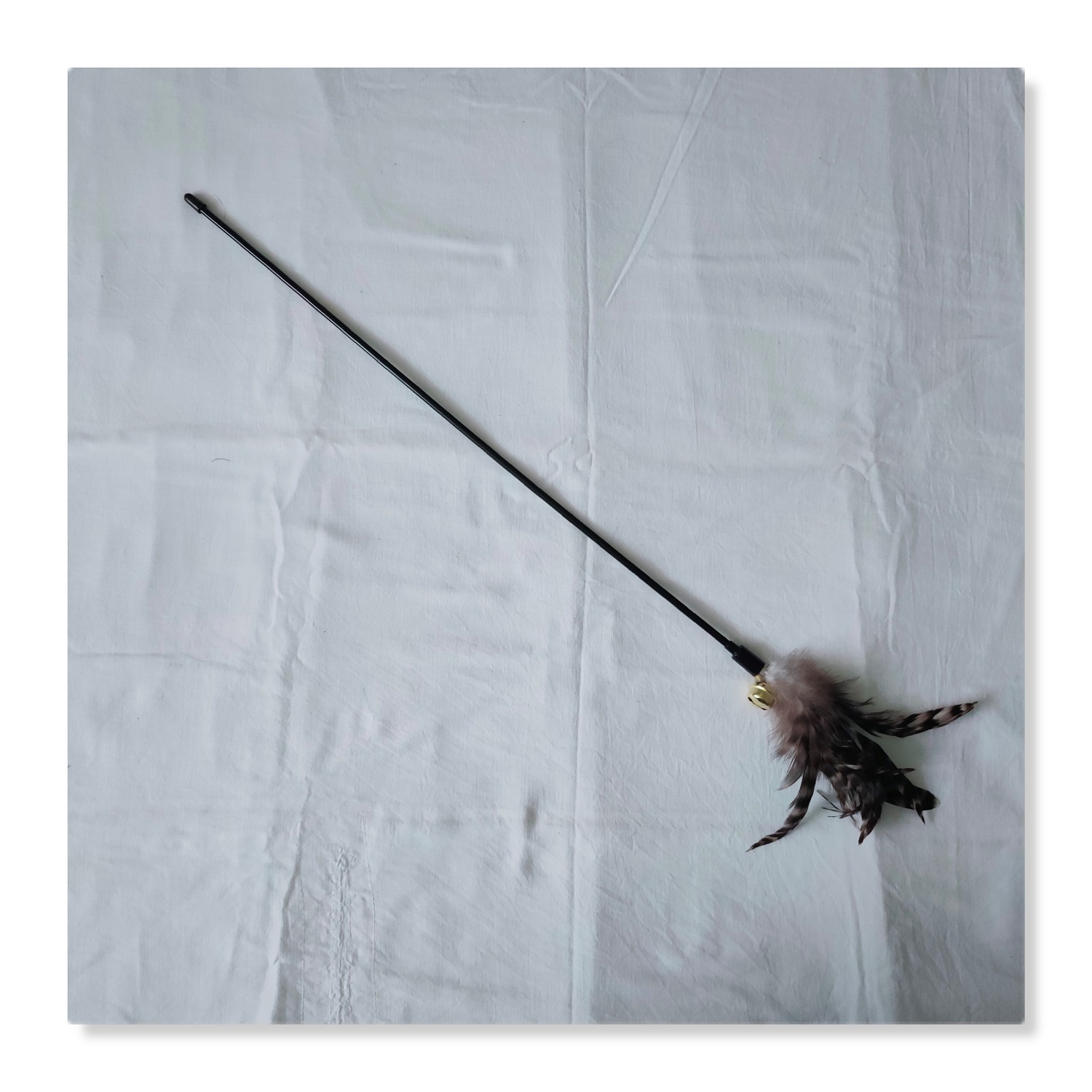 Our cat teaser wand with a handle, easy to grip and hold while you play