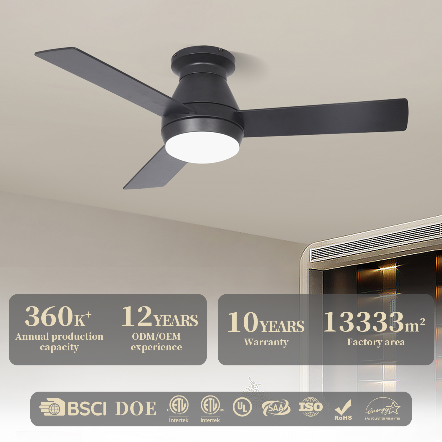 Our main products include decorative ceiling fans, lighting, household appliances, and hardware accessories. Staying true to our original vision — “Let the world be full of magic” — we continuously introduce advanced technology and innovative designs, provide regular employee training, and strictly control product quality.
