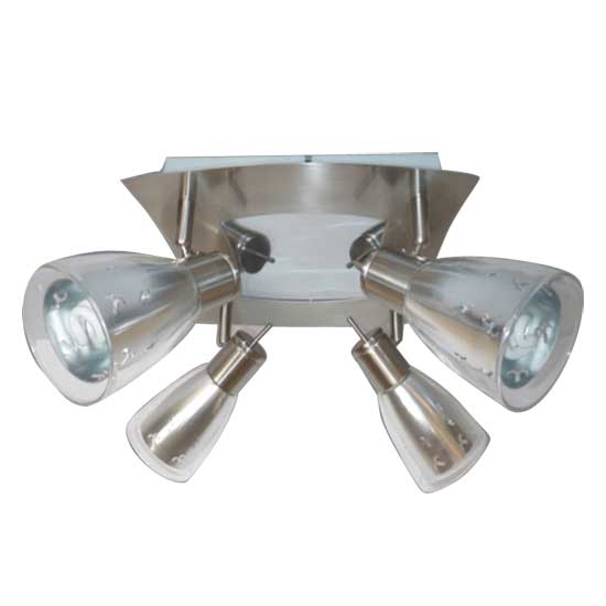 Showcased here is a 4-light ceiling lamp with a chrome-finish metal frame and translucent lampshades. They diffuse remarkable brightness to create a comfortable and cozy atmosphere. Illuminate the room with this 4-light ceiling lamp.