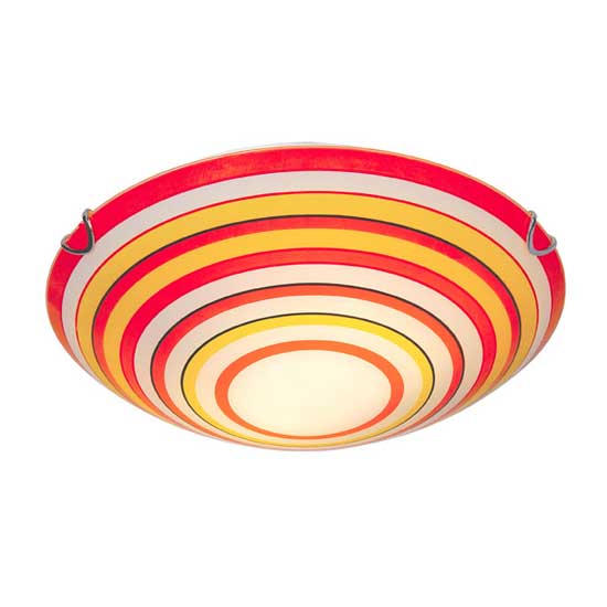 The flush-mount ceiling lamp illuminates with a soft and cozy glow. The vibrant striped patterns offer a funky touch. Add a splash of colors to your living room with this ceiling lamp.