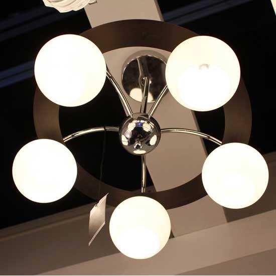 This ceiling lamp features a durable iron main structure with a highly glossy finish. It comes with 5 heads with milky glass lampshades to deliver soft and warm light beams. Stylish and neat, this ceiling lamp makes an excellent light choice for your modern home.