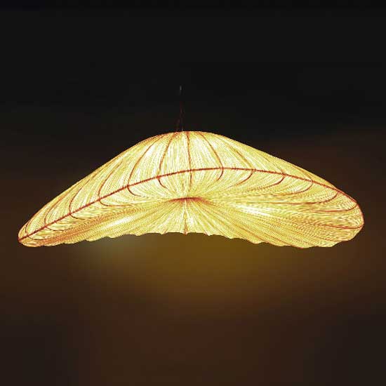 Displayed is a ceiling lamp featuring a robust metal structure. Designed with specially treated fabrics, this lamp showcases a modern touch. This ceiling lamp can also be custom-made for your preference.