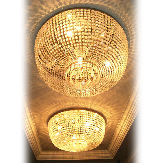 This is a ceiling lamp that comes in a grand style. With transparent beads, the lamp is glamorous when lit up. This high quality table lamp is ideal for hotels and homes.