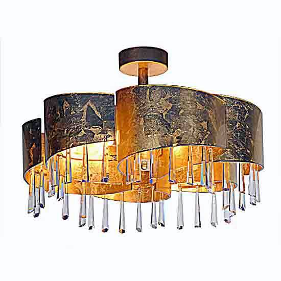 This ceiling lamp features a golden lampshade in wave-like design, which showcases a touch of sophistication. It comes with sparkling dangling crystal-like ornaments. Add this stylish yet functional ceiling lamp to your modern home.