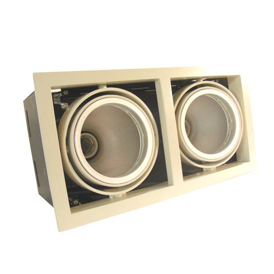 This is a ceiling light which can store 2 spotlights. The spotlights are held by the rectangular frame which is easy to fix it onto the ceiling. This ceiling lamp is useful for producing powerful lighting.