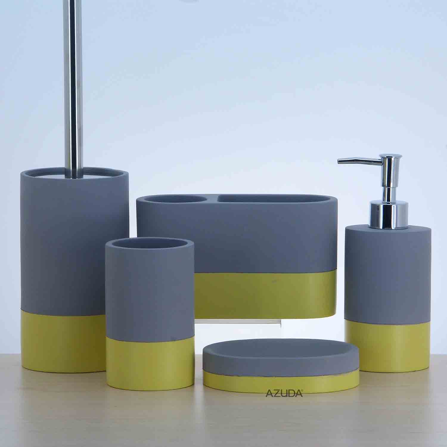 CEMENT BATHROOM ACCESSORY SET W/YELLOW BASE