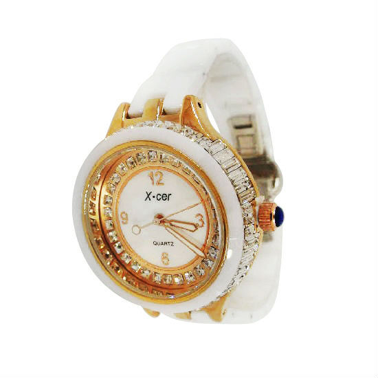 • White dial with gold-tone Arabic numeral markers at the position of 3, 6, 9 and 12 o’clock.